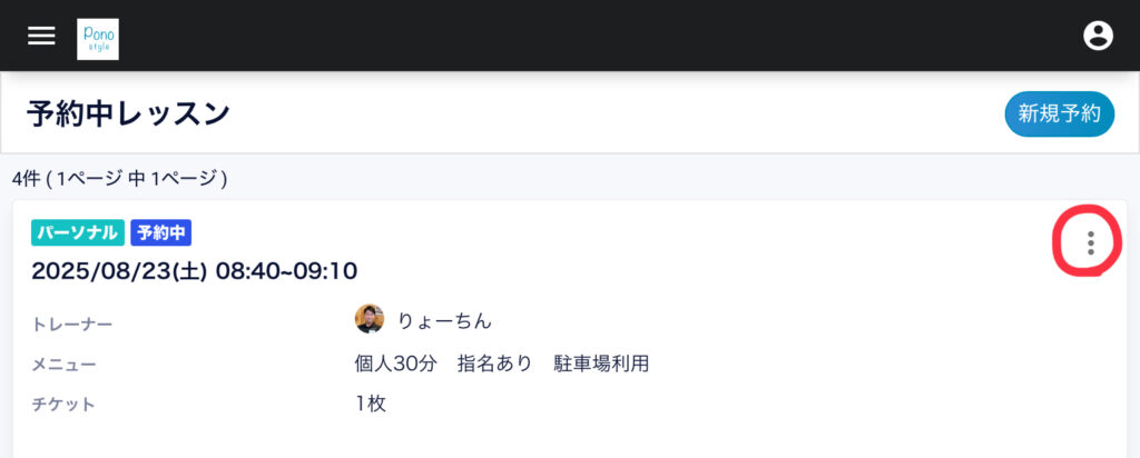 変更したい予約の右上の三点マークをタップしてください。