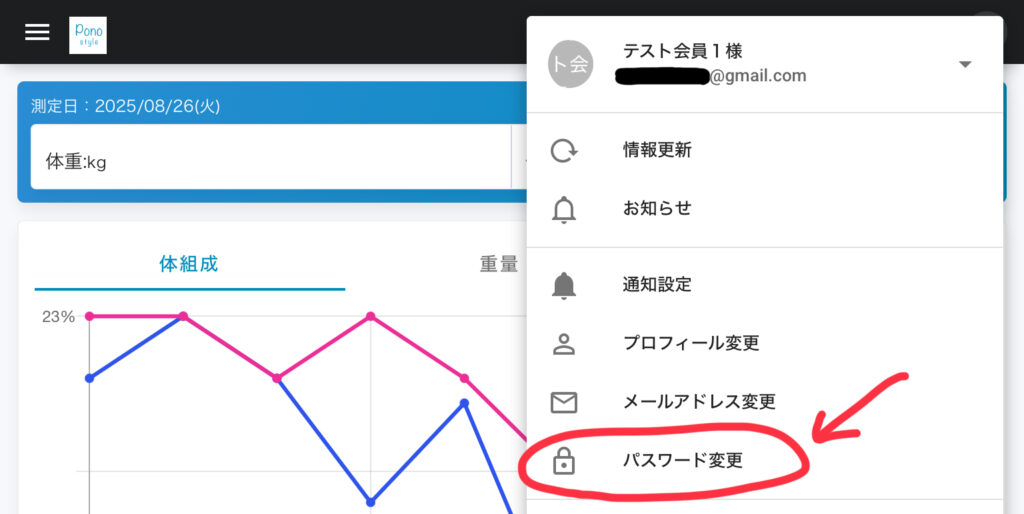 編集メニューが開くので、「パスワードを変更」をタップ。