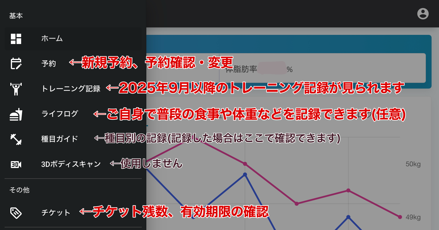 会員の方は、契約されたメニューが表示されます。